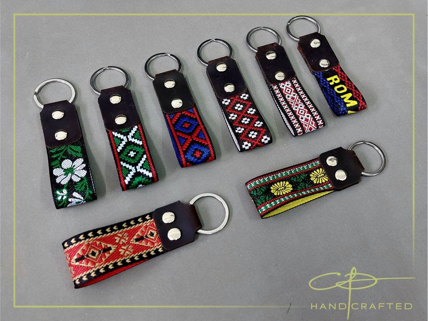Breloc din piele naturala si tesatura impletita, lucrat manual.