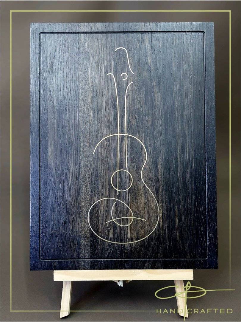 Decoratiune de arta realizata din intarsie de alama (4 mm adancime) in lemn de stejar ebonizat.