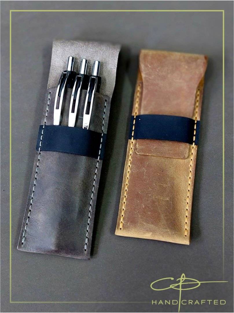 Etui din piele naturala pentru pix & creion & stilou, realizat integral manual