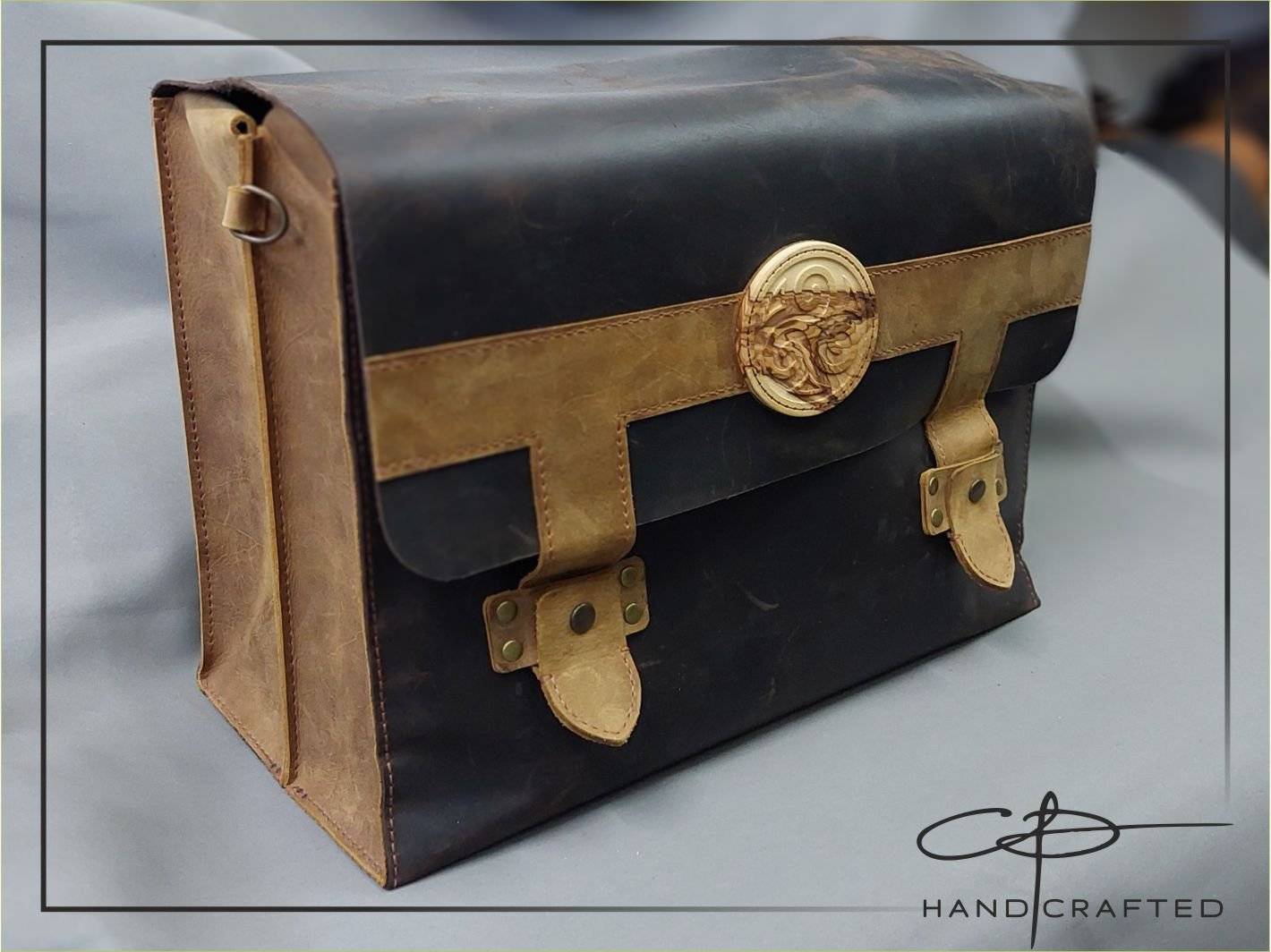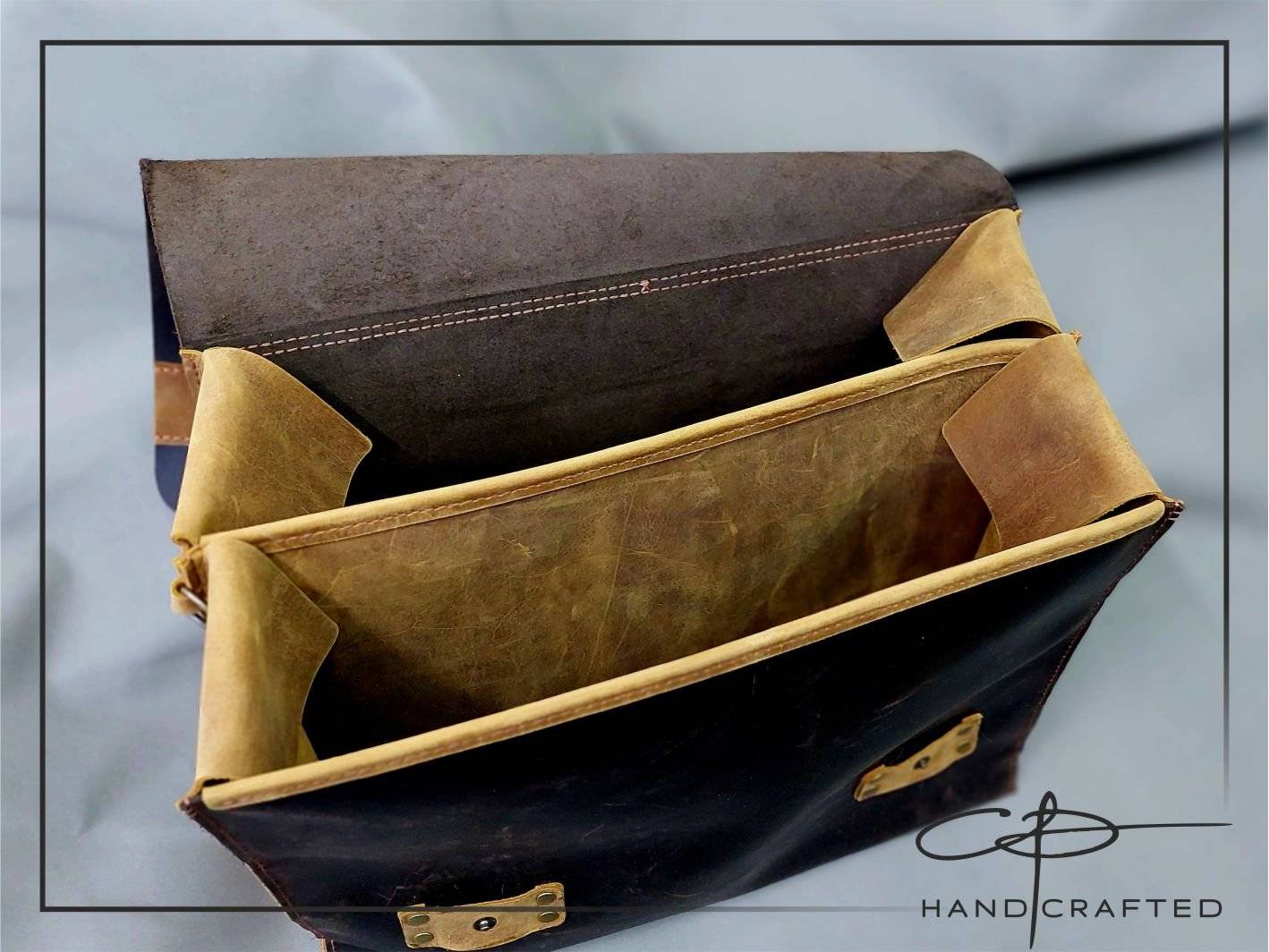 Geanta din piele naturala, realizata integral manual, conceputa special pentru zborurile cu avionul "low cost".