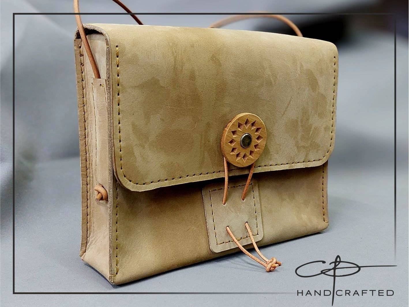 Geantuta din piele naturala, realizata integral manual (croit, cusut, finisat).
