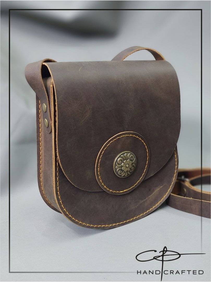 Geanta retro din piele naturala, realizata integral manual (croit, cusut, finisat).
