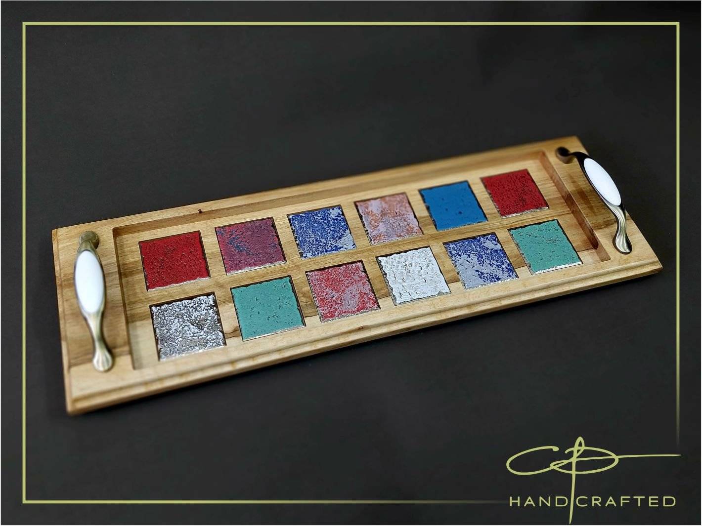Platou de servire din stejar natural si ceramica.